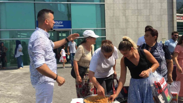 Artvin’in Kemalpaşa ilçesindeki Sarp Sınır kapısında bir vatandaş aldığı maaş primini Gürcistan’dan gelenlere tatlı ikram ederek harcadı.