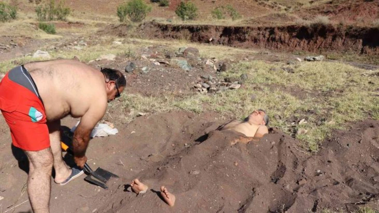 Erzurum’un Oltu ilçesinde bulunan Söğütlü dereye gelen vatandaşlar, yağmur sularının volkanik dağdan getirmiş olduğu mineralli kumlarda şifa arıyor. Vatandaşlar, eklem ağrılarından romatizma hastalıklarından kurtulmak için kum banyosu yaptıklarını söylüyor.