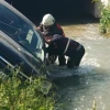 Sulama kanalına devrilen aracın sürücüsü yaralandı