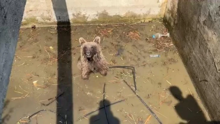 Sulama kanalına düşen ayı, 5 saatlik çalışmayla kurtarıldı