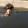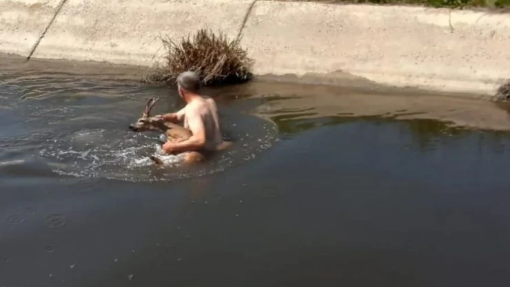 Sulama kanalına düşen karacayı muhtar kurtardı