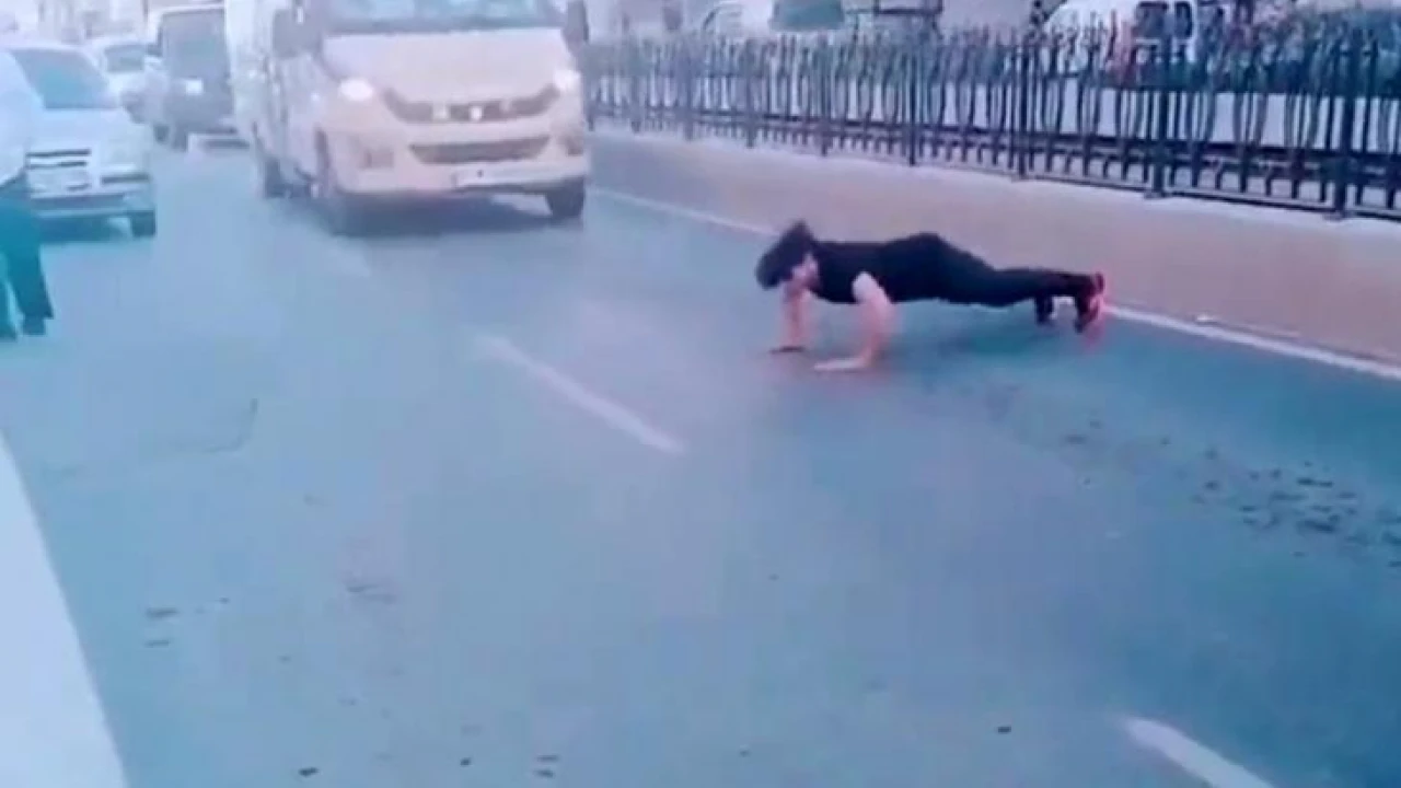 Sultangazi'de yabancı uyruklu şahıs, yol ortasında trafiği durdurarak şınav çekti. TikTok için çekilen görüntüler izleyenleri hayrete düşürdü.