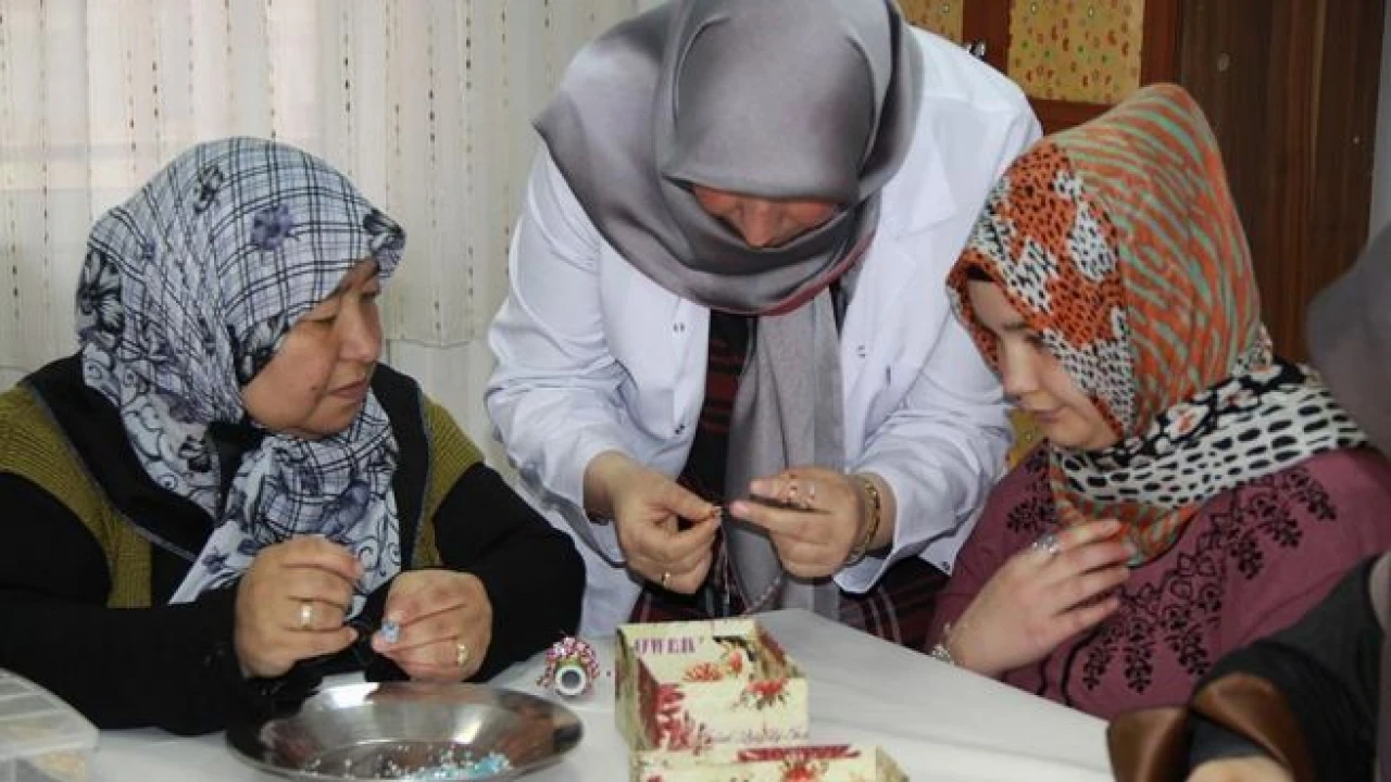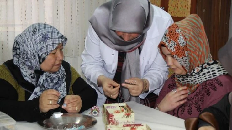 Ankara'nın Çubuk ilçesinde açılan takı tasarım kursuna katılan kadınlar, yaptıkları ürünleri satarak aile bütçesine katkıda bulunuyor.