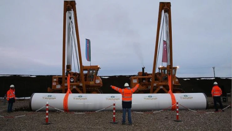 Azeri gazını Türkiye üzerinden Avrupa'ya taşımayı amaçlayan TANAP için çalışmaların hızla devam ettiği, projede kullanılmak üzere üretilen 850 kilometrelik borunun teslim edildiği bildirildi.