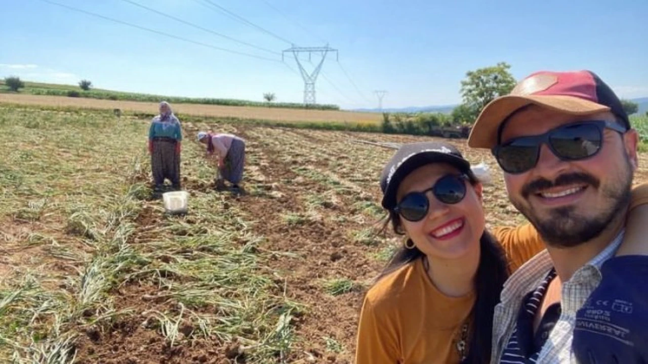 Tatile gelen öğretmen çift, kendilerini sarımsak tarlasında buldu