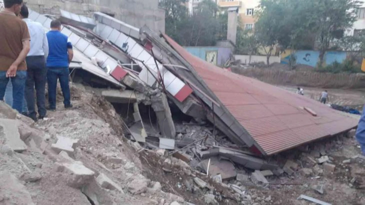Bitlis'in Tatvan ilçesinde yan binanın temel kazısı sırasında hasar gören 4 katlı bina çöktü.