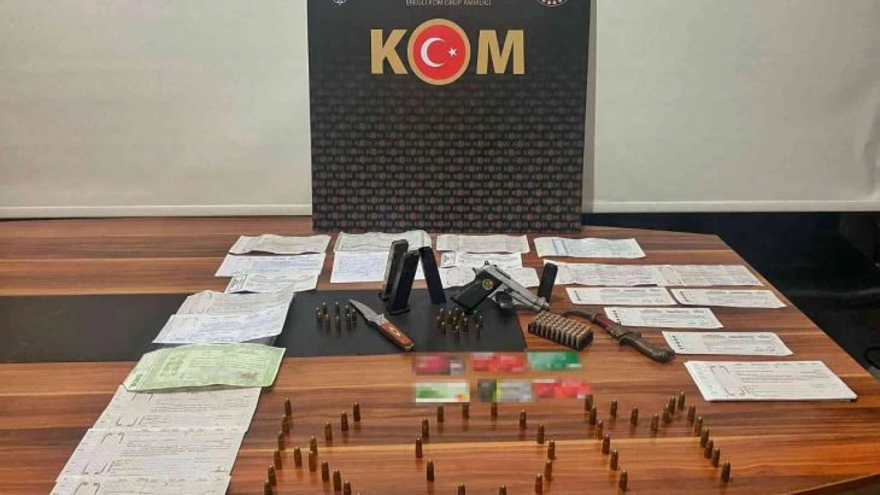 Zonguldak İl Emniyet Müdürlüğü Kdz. Ereğli KOM Grup Amirliğince ilçemizde tefecilik yaparak vatandaşları mağdur ederek haksız kazanç sağladıkları iddia edilen şahıslara yönelik operasyon gerçekleştirdi. Operasyonda L.Ö (53), A.R.E. (38), E.K (34), İ.Ö (52) isimli şahısların tefecilik yaptığı, S.D (24) ve M.C.Ö. (24) isimli şahısların ise tefecilik faaliyetlerine yardım ettiği gerekçesi ile gözaltına alındı. Eş zamanlı olarak 7 adrese gerçekleşen operasyonda şüphelilerin ev ve iş yerlerinde yapılan aramalarda 1 adet ruhsatsız tabanca, 5 adet tabanca şarjörü, 119 adet fişek, 2 adet bıçak ile çok sayıda senet ve evrak ele geçirildi.
