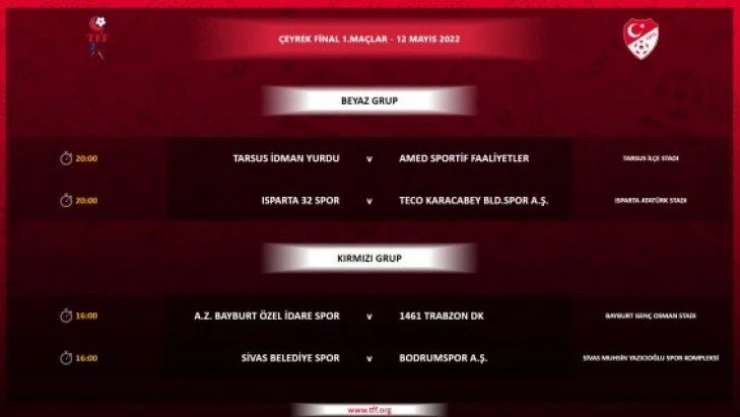 TFF 3. Lig Play-Off eşleşmeleri ve yarı final müsabakaları programı şöyle: