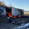 Tır alev alev yandı, dorsesindeki 30 ton buğday zarar görmedi