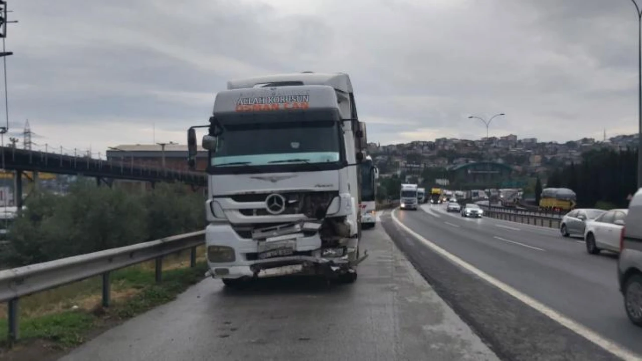 Kocaeli’nin Dilovası ilçesi TEM Otoyolu’nda yolcu otobüsü ile tırın arasında kalarak paramparça olan otomobilden sürücü sağ kurtuldu.