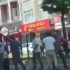 Trafikte tartışan grup yolun ortasında sopalarla birbirine girdi
