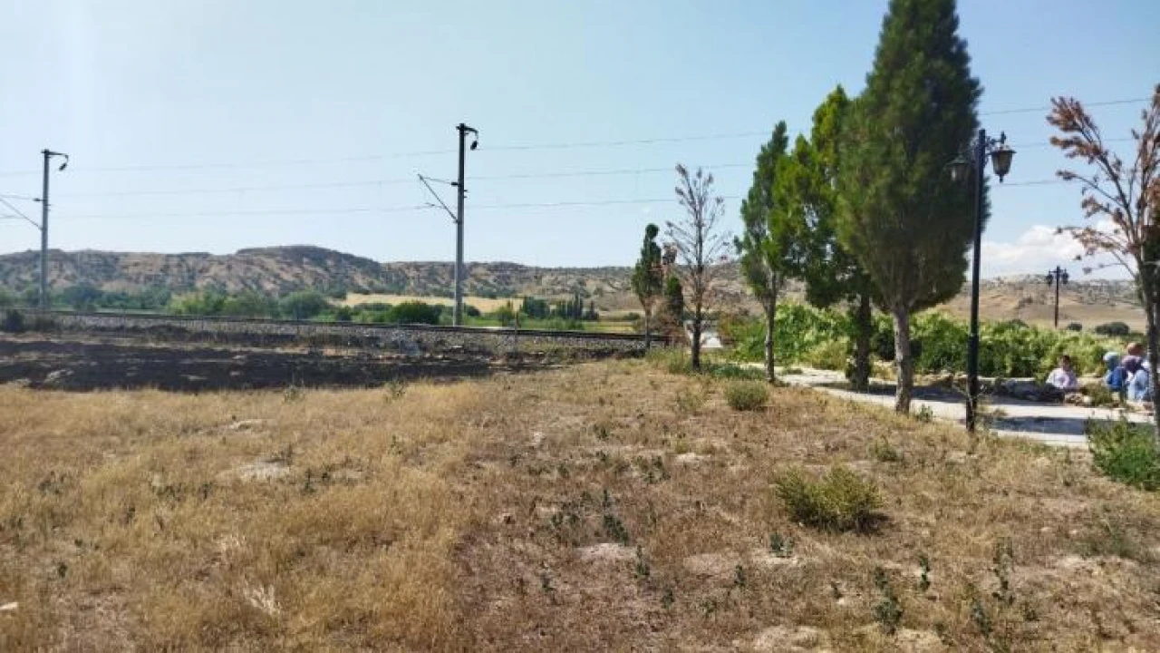 Eskişehir’in Yunus Emre Mahallesi’nden geçen trenin tekerleğinden çıkan kıvılcım, boş arazideki otları tutuşturarak yangına sebep oldu. Yunus Emre’nin birinci mezarına yakın bir bölgede çıkan yangın büyümeden itfaiye tarafından söndürüldü.