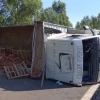 Tuğla yüklü kamyon devrildi, otoyol trafiğe kapandı