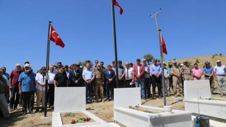Tunceli'nin Çemişgezek ilçesine bağlı Güneybaşı köyünde hain terör örgütü PKK tarafından şehit edilen 6 sivil ile 2 güvenlik korucusu, kabirleri başında düzenlenen törenle anıldı.