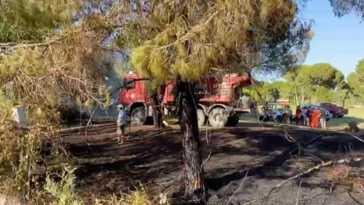 Antalya'nın Serik ilçesinde turizm bölgesinde başlayan yangın golf sahasına sıçradı. Ağaçların bir anda alev aldığı yangına müdahale eden ekipler ve vatandaşlar yangını büyümeden söndürdü.
