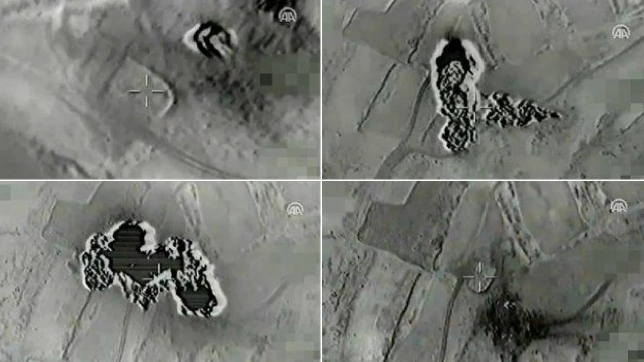 Kandil'deki hedeflere 8 F-16 ve F-4 2020 uçaklarıyla gerçekleştirilen hava harekatında mühimmat deposu, korugan ve sığınakların bulunduğu yerlerin tam isabetle vurulmasına ilişkin görüntüler basına verildi.