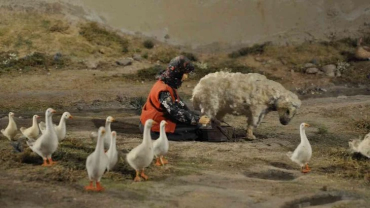 Kars Peynir Müzesi’nde ahır bölümü, içi süt dolu güğümler, yaylalardaki yaşam ve peynir yapımı, peynirin imalat serüveni anlatılırken, geçmişten günümüze peynir yapımında kullanılan araç ve gereçler de sergileniyor.