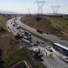 Tırın çarpmasıyla devrilen dijital levha, kaza yapan tır ve kaza alanı havadan görüntülendi.