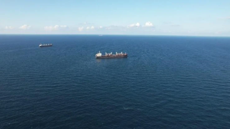 Tahıl sevkiyatı anlaşması çerçevesinde Çernomorsk Limanı'ndan hareket ederek İstanbul açıklarına ulaşan mısır yüklü 'Rojen' isimli gemi drone ile görüntülendi.