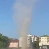 Ümraniye’de akşam saatlerinde cadde ortasında oluşan hortum paniğe neden olurken, o anlar bir vatandaşın cep telefonu kamerasına yansıdı.