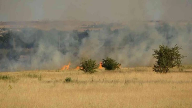 Uşak Havalimanı'nın otluk alanında çıkan yangın paniğe neden olurken 30 dekarlık alan ise kül oldu.