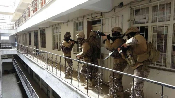 Van’da polis ekiplerinin ’Göçmen Kaçakçılığı ve İnsan Ticareti’ yapan şahısların deşifresine ve düzensiz göçmenlerin yakalanmasına yönelik çalışmaları devam ediyor. Bu çerçevede yapılan çalışmalar sonucunda kent merkezinde bir iş merkezinde düzensiz göçmen olduğu tespit edildi. Bunun üzerine İl Emniyet Müdürlüğüne bağlı Göçmen Kaçakçılığıyla Mücadele ve Hudut Kapıları Şube Müdürlüğü ekipleri ile özel harekat polisinin düzenlediği operasyonda, 13 düzensiz göçmen yakalandı.