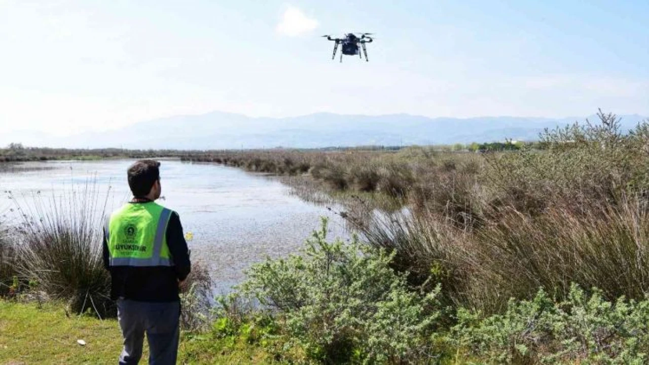 Samsun Büyükşehir Belediyesi, erişilmesi zor olan sazlık alan, sulama kanalları ve geniş su birikintilerinin bulunduğu alanlarda, zirai insansız hava aracı drone ile havadan ilaçlama gerçekleştirerek vektörle mücadele ediyor. Biyolojik mücadelede kullanılan ’ekosisteme dost’ ilaçlar başka canlılara da zarar vermiyor.