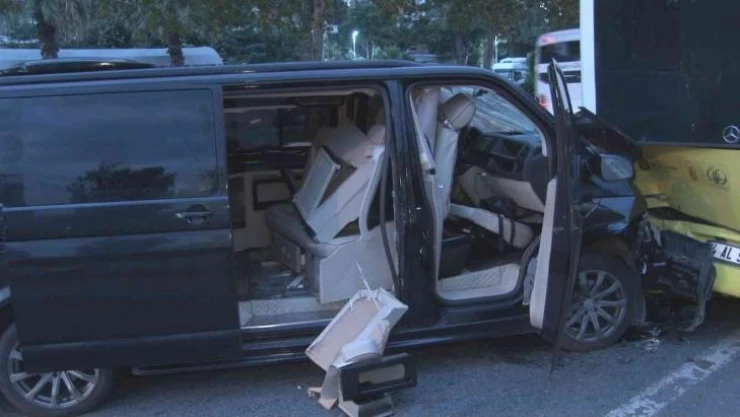 Havalimanından aldığı turistleri Sultanahmet’teki oteline götüren tur minibüsü Beyoğlu’nda park halindeki İETT otobüsüne çarptı. Kazada şoför ve kadın turist yaralandı. Yaralılar sağlık ekipleri tarafından hastaneye kaldırıldı.