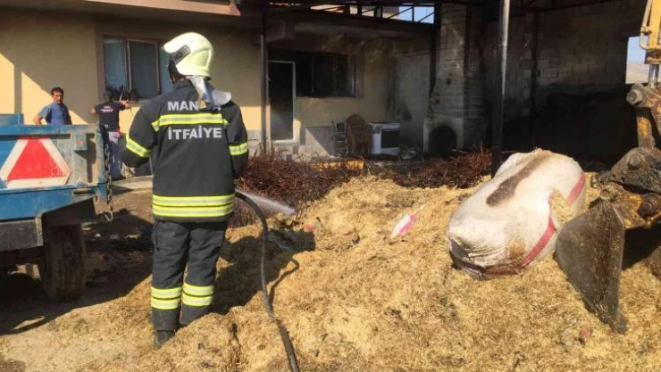 Manisa'nın Alaşehir ilçesindeki bir ahırda çıkan yangında 1 inek ile 10 koyun telef oldu.
