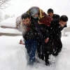 Mahalle sakinleri, düşme sonucu kafasında kanama olan yaşlı kadını, yoğun kar yağışına rağmen ambulansa taşımak için adeta seferber oldu.
