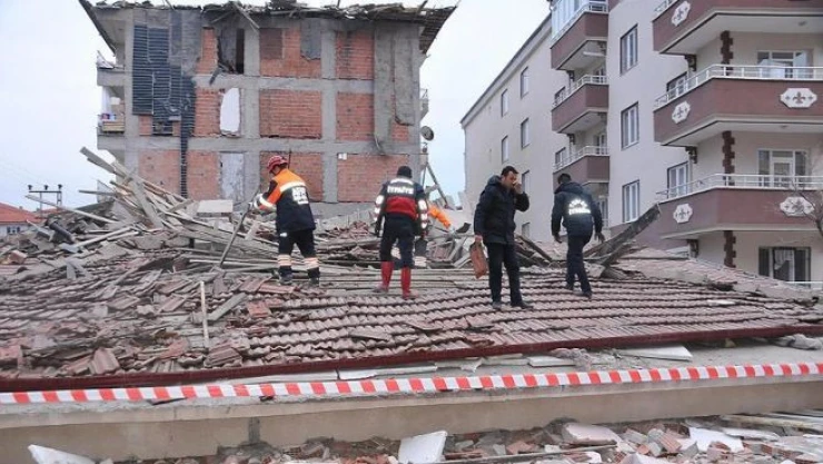 Kırşehir'in Çiçekdağı ilçesinde 10 Ocak Pazar günü meydana gelen 5 büyüklüğündeki depremde hasar gören ve boşaltılan Yozgat'ın Yerköy ilçesi Ayanoğlu Mahallesi'ndeki 5 katlı bina dün çökmüştü.www.haberplatosu.com