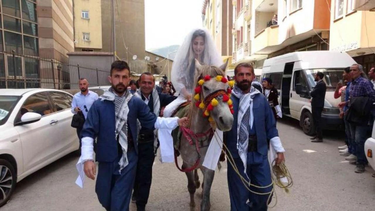 HAKKARİ (İHA) – Hakkari'nin Yüksekova ilçesinde temsili olarak yapılan atla gelin getirme, renkli görüntülere sahne oldu.